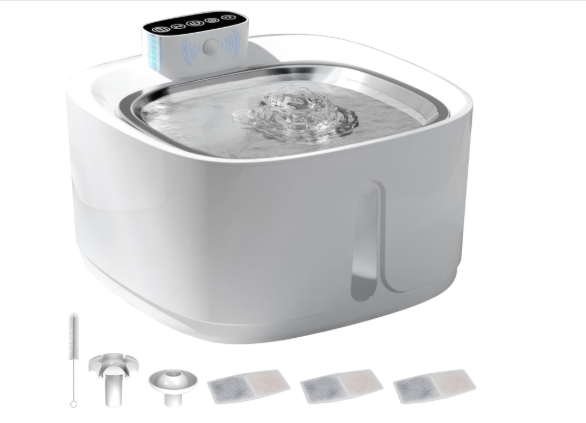 ⭐ 4. Bebedouro para gatos sem fio com sensor, 3,2 L fonte de água para animais de estimação Com bandeja de água de aço inoxidável, fontes dispensadoras de água corrente para gatos,3 conjuntos de filtros