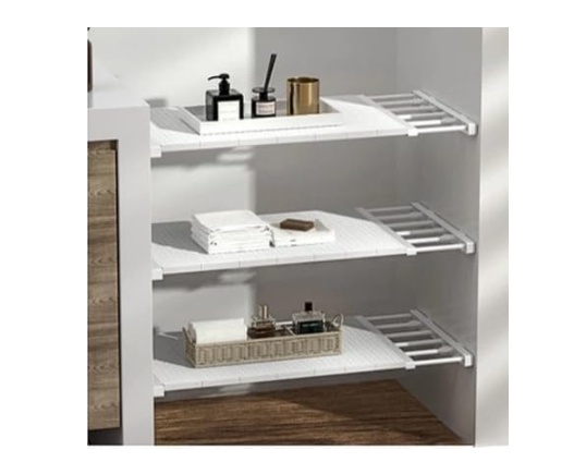 - Instalação Imediata e Sem Ferramentas: Não requer furaduras ou montagem complexa. Basta colocá-lo diretamente sobre a prateleira do armário, ajustando a largura para se adaptar aos diferentes tamanhos de armários. Pronto para usar em segundos.